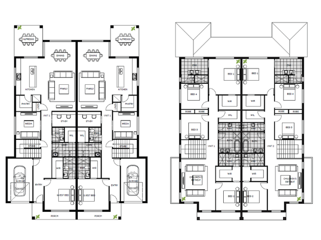 The Aspen is a refined 5-bedroom, 3-living area duplex that enhances the Silverbirch design with improved functionality and efficient block usage. The lower floor features a large bedroom with a walk-in robe and two-way bathroom, leading to a grand open-plan living area where the living room, dining space, and upgraded kitchen with a walk-in pantry converge. An additional living area and spacious patio offer ample space for relaxation and entertainment. Upstairs, the Aspen includes a luxurious master suite with a walk-in wardrobe and ensuite, alongside four well-appointed bedrooms and a versatile living area. Unique to the Aspen, the garages are positioned on the outer walls, maximizing internal living space and addressing block constraints. The Aspen combines elegance and practicality, making it ideal for families seeking a spacious, well-designed home.